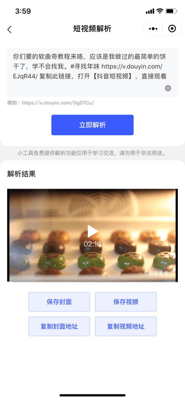 小tips:小工具免费提供解析功能仅用于学习交流,请勿用于非法用途。