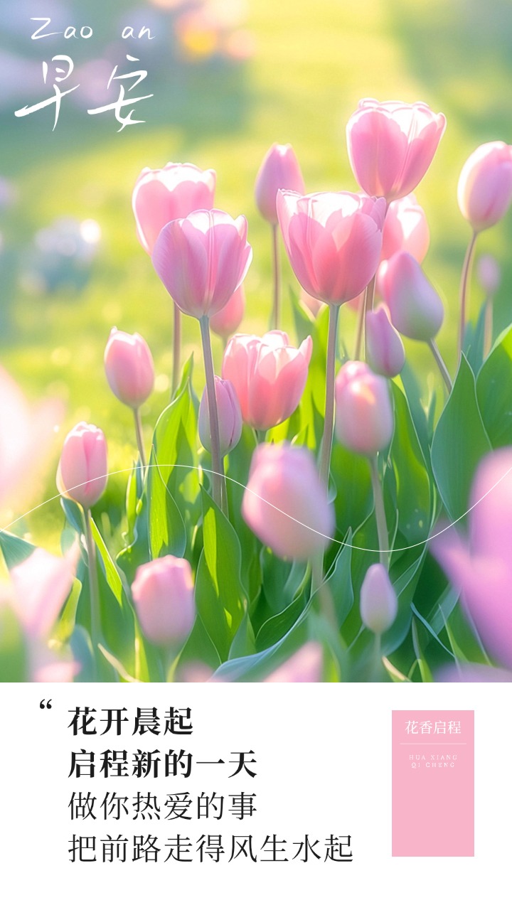 花知晨好,鸟报君安。晨光正好,花开正香,愿你一天都晴朗。