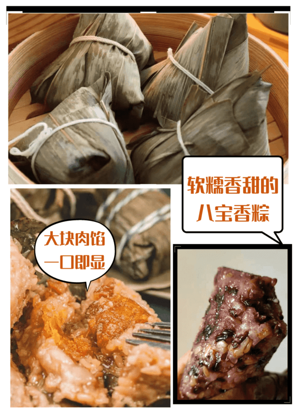 甜口有紫米玫瑰豆沙粽,桂花燕麦蜜枣粽