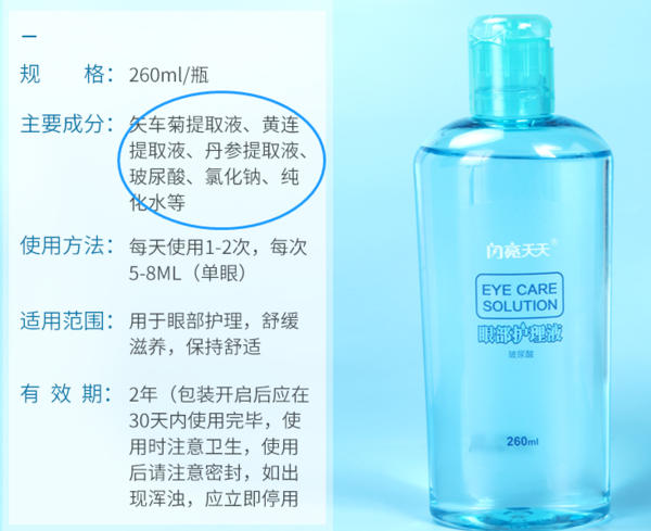 主要成分是矢车菊,玻尿酸,黄连草本精华,矢车菊用来清凉明目,玻尿酸改善眼干眼涩,黄连可以清凉放松眼部,消除异物感。