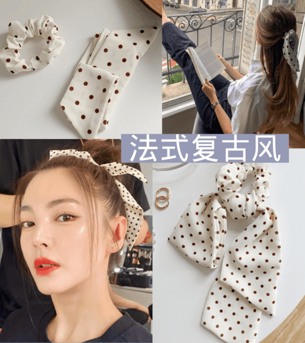 采用大肠圈+打结飘带组合,款式比较灵活