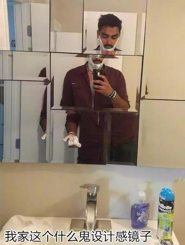 你知道什么叫艺术感分离吗?看看这面镜子就会有答案了,这设计上到底是对屋主有啥深仇大恨,连镜子都设计的有大卸八块的既视感