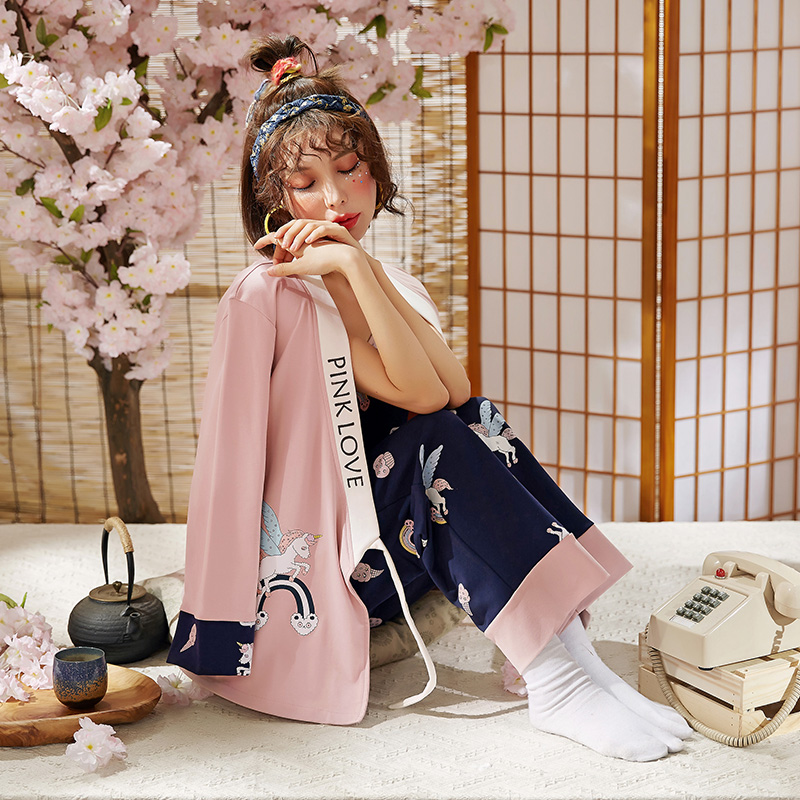 睡衣必须是一套才是完整,敲可爱的3件套,吊带加睡袍再加宽松的睡裤,萌萌的俏皮独角兽印花,四季可穿的纯棉面料,穿上它,跌入童话镇,做一个美滋滋的梦吧~