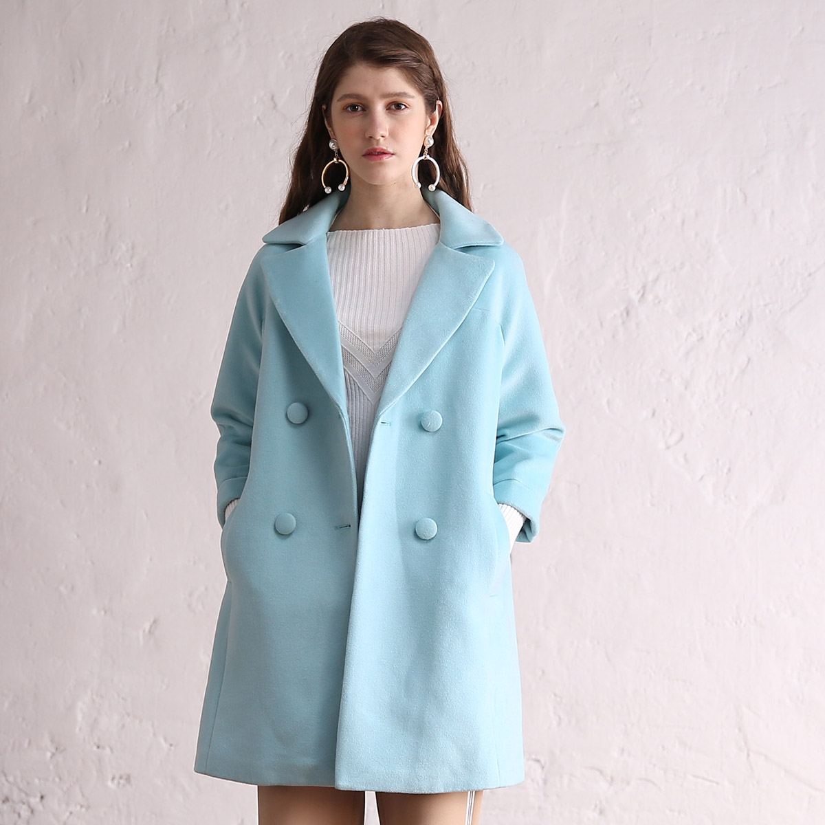 宽松版的毛呢大衣长度恰好到小腿,对大腿肉多,上半身偏胖的姑娘特别友好。落肩的设计无论肩宽或者肩窄都能轻松驾驭。面料是那种柔软舒适的毛呢面料哦~