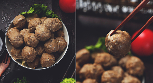 正宗潮汕纯手打牛肉丸,从入锅的那一刻起就开始隐藏不住作为牛肉丸应该有的香气,经过片刻的等待,膨胀,捞出,入口,如此般Q弹肉质配上溢出的鲜美汤汁,简直让吃货垂涎三尺!