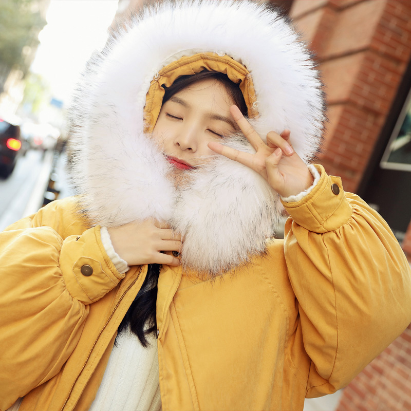 很有特色的大毛领,只要寒风一吹,随时可以将帽子翻起来戴上,大毛领子能保证你绝不会冻到耳朵疼~嘿嘿~