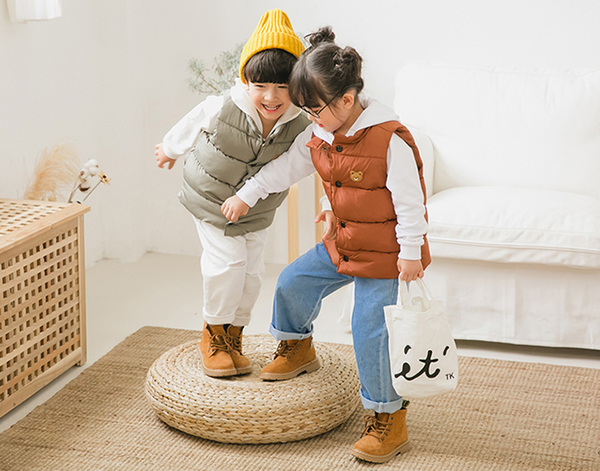 夹棉的小马甲有多种颜色可以选,无论是男孩子还是女孩子都可以穿,短款的版型,胸前有一只可爱的小熊做点缀,家里的宝贝穿上后干净利落,充满了童真与活力。