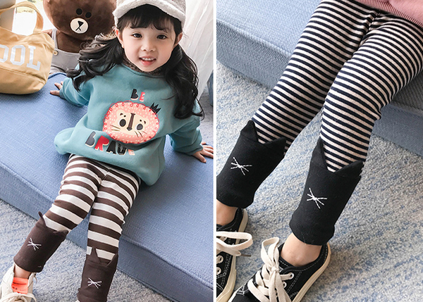 这款条纹打底裤,有萌萌的猫咪作为翻边装饰,童趣十足,条纹的设计也让整条裤子不单调,更加有层次感哦~