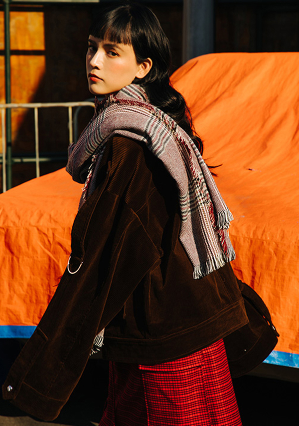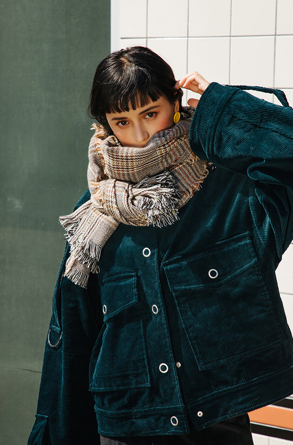格子围巾给人的印象就是酷,复古。这类围巾最好是搭配纯色系的衣服,错落有致的格子瞬间能成为整穿搭的亮点。