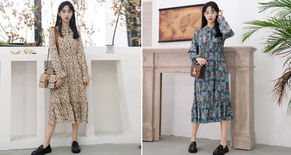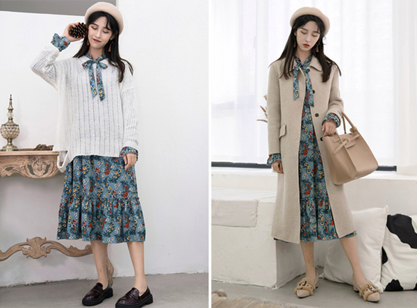一条复古味的碎花裙,长度刚及小腿的位置,对于刚过完春节,肚子和大腿长肉肉的姑娘们非常友好,松紧腰可以完美藏住腰上的小肉肉,A字的设计版型,凸显飘逸而不显臃肿,领口可以随性打个小结扣,也可以绑个蝴蝶结,甜美力max~