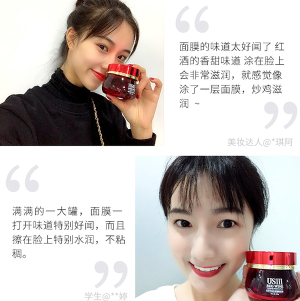 又懒又想要拥有好皮肤的小仙女可以试试USIII的红酒多酚面膜,特别提取红酒多酚精华,能够提亮暗沉肤色,渗透滋养脸部肌肤的每一个细胞,只需涂完睡上一觉,第2天,就可以拥有水润弹性的肌肤一整天。