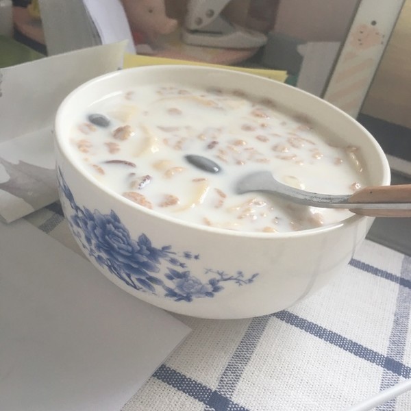 牛奶麦片的做法则和酸奶的相反,需要将麦片先放入杯中,然后再加入温热的牛奶,喜甜的小伙伴们可以加入适量的糖,然后搅拌,开喝。