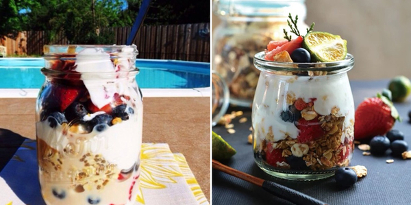 只需要去面包店买一点奶油,去水果店买一些自己爱吃的当季水果,然后找一个漂亮的玻璃杯一层奶油混一层水果,最后用上草莓或者提子点缀上方,撒上一层麦片,就OK啦