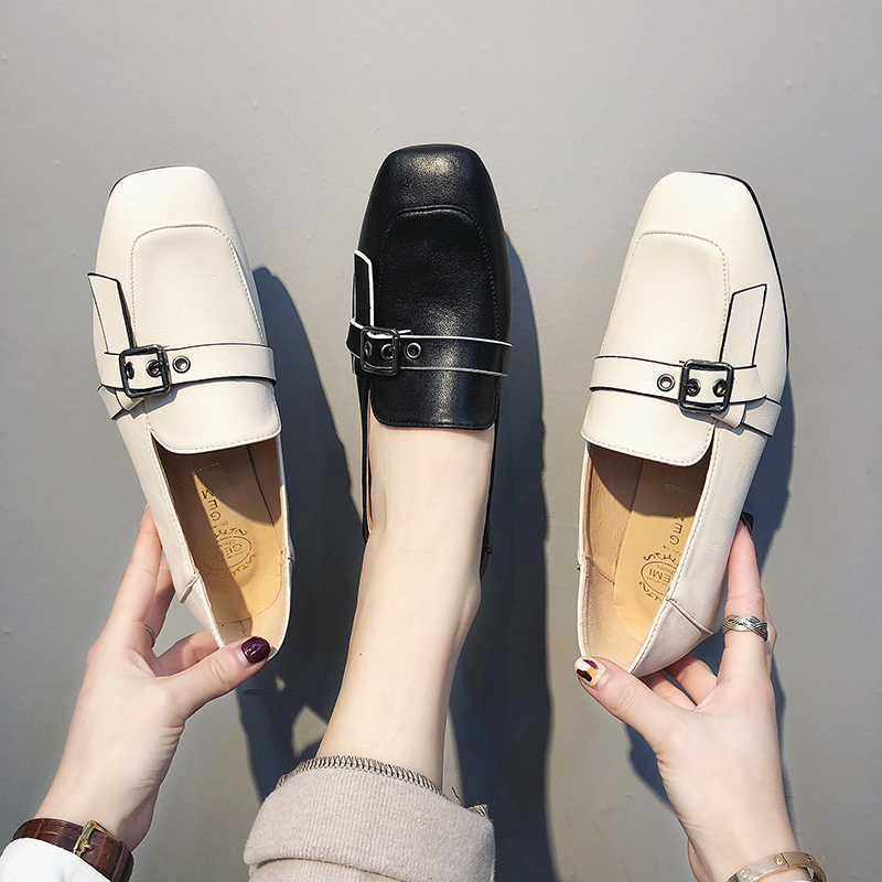 这款鞋子的PU皮非常柔软,上脚很是舒适,有黑白两色,黑色的经典大气,白色款简约时尚。鞋子是方头的,穿上之后一般都不会磨脚顶脚。