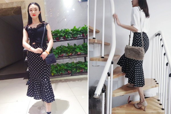 鱼尾裙摆设计,穿上它,再搭配一个小吊带