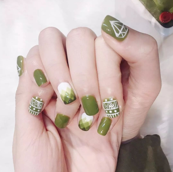 OMG~今天先给大家介绍一下巨显白的神仙色——抹茶色,有一种特别治愈的小清新感,营造出生机勃勃的活力,带着绿意的美甲让人内心沁凉,带来视觉上的享受