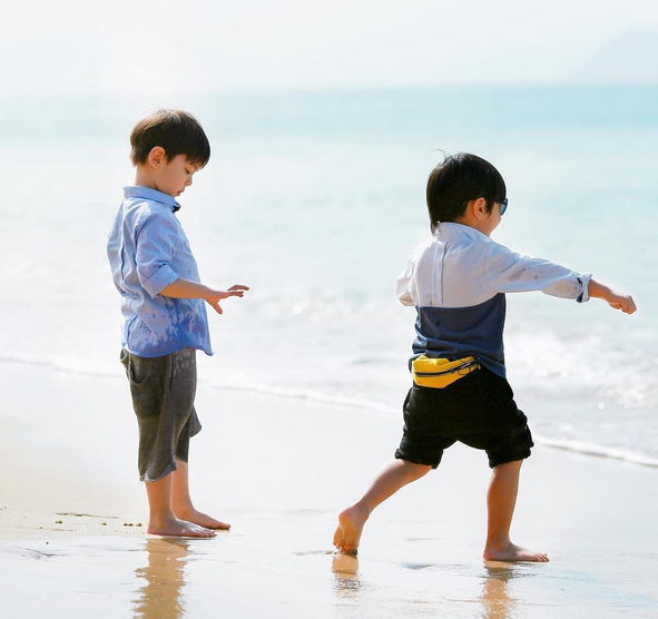 如果你家的是小王子,那就宽松的T恤配短裤,简单易搭,不论是玩水还是玩沙子都毫无阻碍