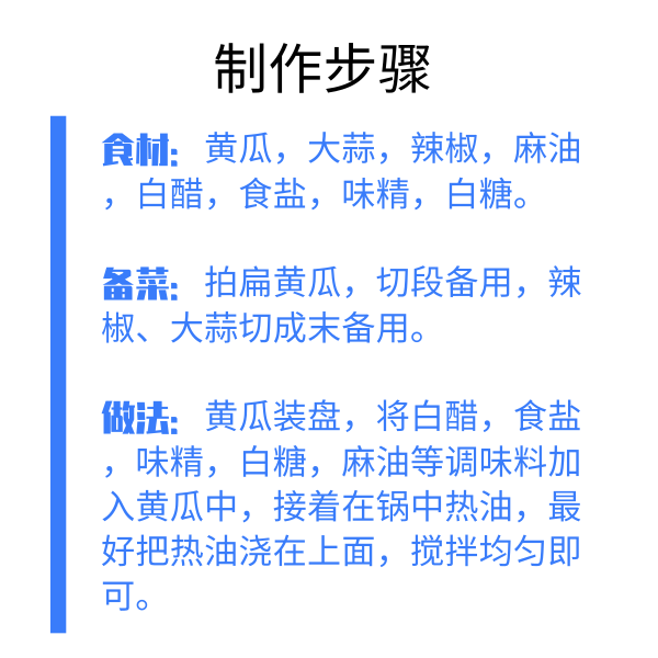 今天给大家分享一道很家常的开胃菜——凉拌黄瓜,其实它的做法很简单,没有下厨经验的小白也能在家做