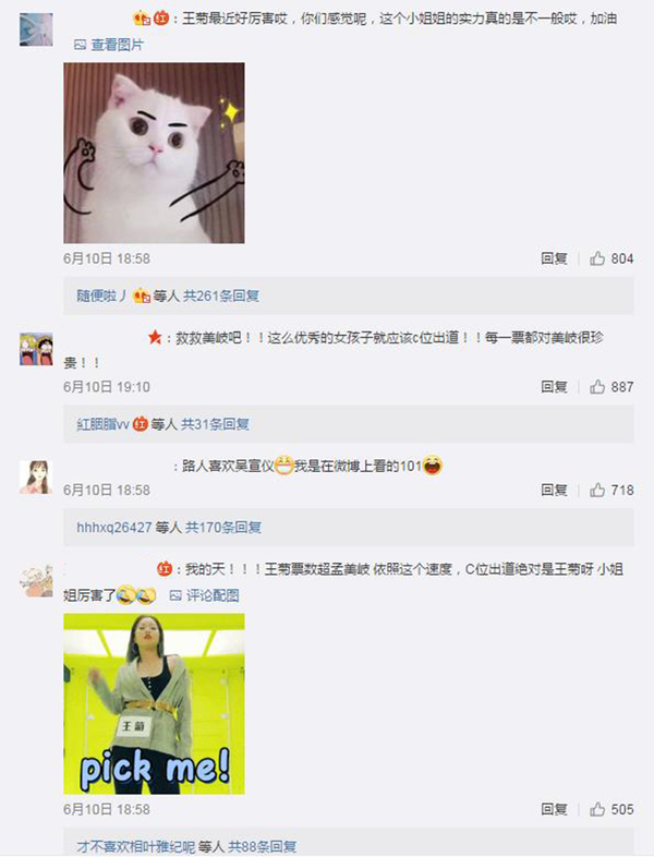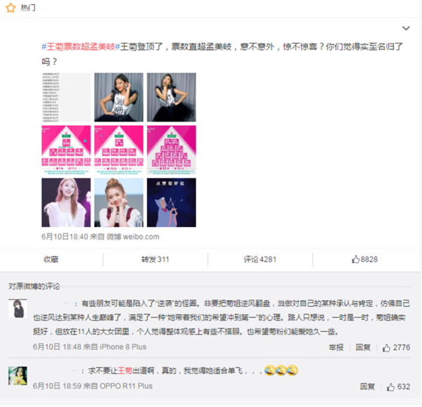 热门微博下评论褒贬不一,有极力pick菊姐的