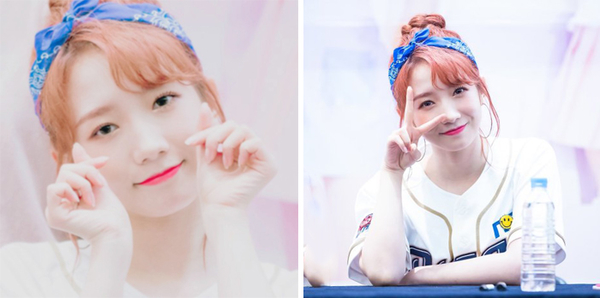 甜美韩系造型照样是hold得住,瞧她一个清新丸子头搭配嘻哈风深蓝色发带