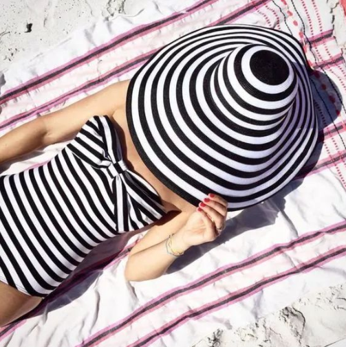 草帽是宽帽型的经典款,微耷拉的宽大帽檐,能分分钟削弱脸部线条且显瘦,遮阳效果也比一般帽子好一些