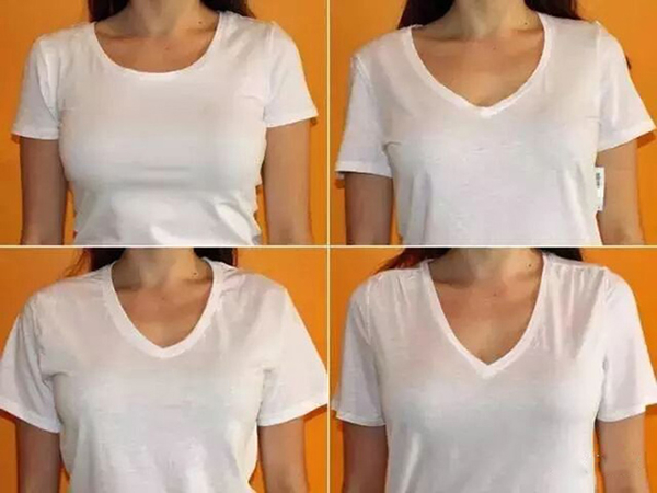 首先关于领口:白T的领口分为U型领,鸡心领,小V领,以及深V领。