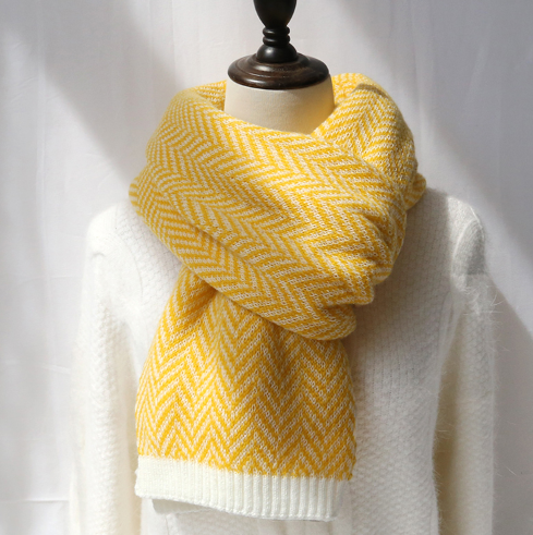 如果第一次买拼色围巾不知道怎么选择,可以先从双色拼接入手,围的时候露出两面颜色,就有拼色的效果