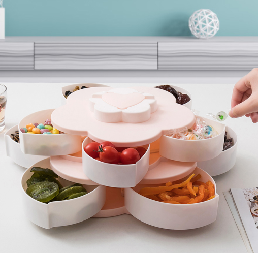 创意花朵造型双层分格果盘,每层四个小分格,可容纳多种食物不串味,用来混合盛放糖果、果脯超好看的