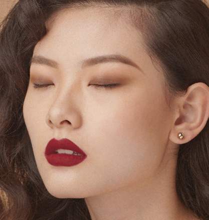 复古红唇妆的红唇是重点,选择自己能驾驭的红色口红色,戏精建议选择色泽浓郁的哑光复古红,想要惹眼正红色也是不错的选择